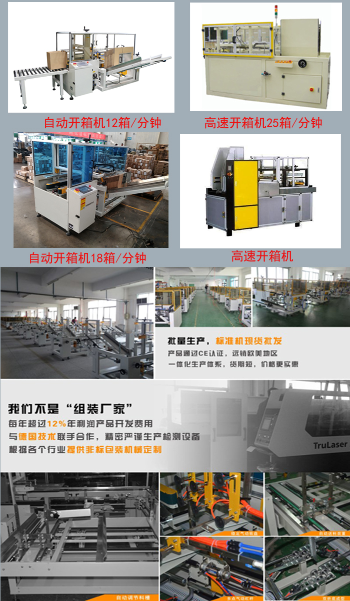 (三)防護裝置這種設備在進行工作時,要進行很多步驟,在一些步驟中可能會出現一些意外的刺傷,那對于這種情況的發生它也做出的一些相應的防護措施,這樣就可以大大避免了人員在設備旁邊受到傷害,做到安全生產的目的。這就是開箱機的三個方面的優點,正是因為它的優點所以才讓它的使用范圍更加廣泛。